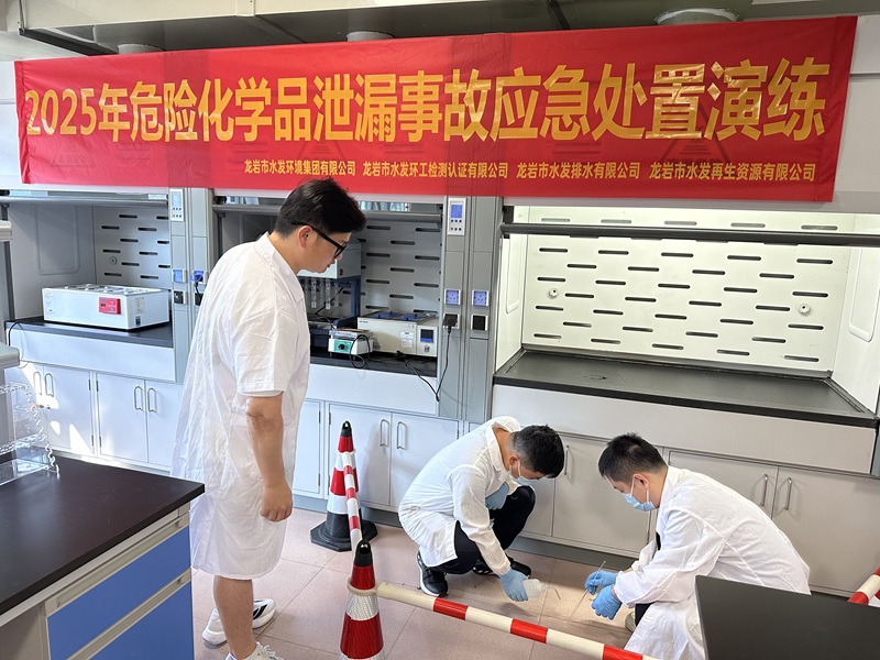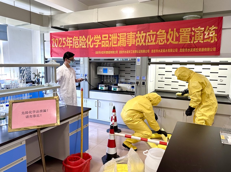 為深入貫徹習近平總書記關于安全生產的重要論述,提升危險化學品泄漏事故應急處置能力,7月3日,龍巖市水發環工檢測認證有限公司成功舉辦了2025年危險化學品泄漏事故應急處置演練。此次演練由龍巖市水發環境集團有限公司主辦,龍巖市水發環工檢測認證有限公司承辦,龍巖市水發排水有限公司、龍巖市水發再生資源有限公司協同協辦,以實戰演練危化品安全保駕護航。